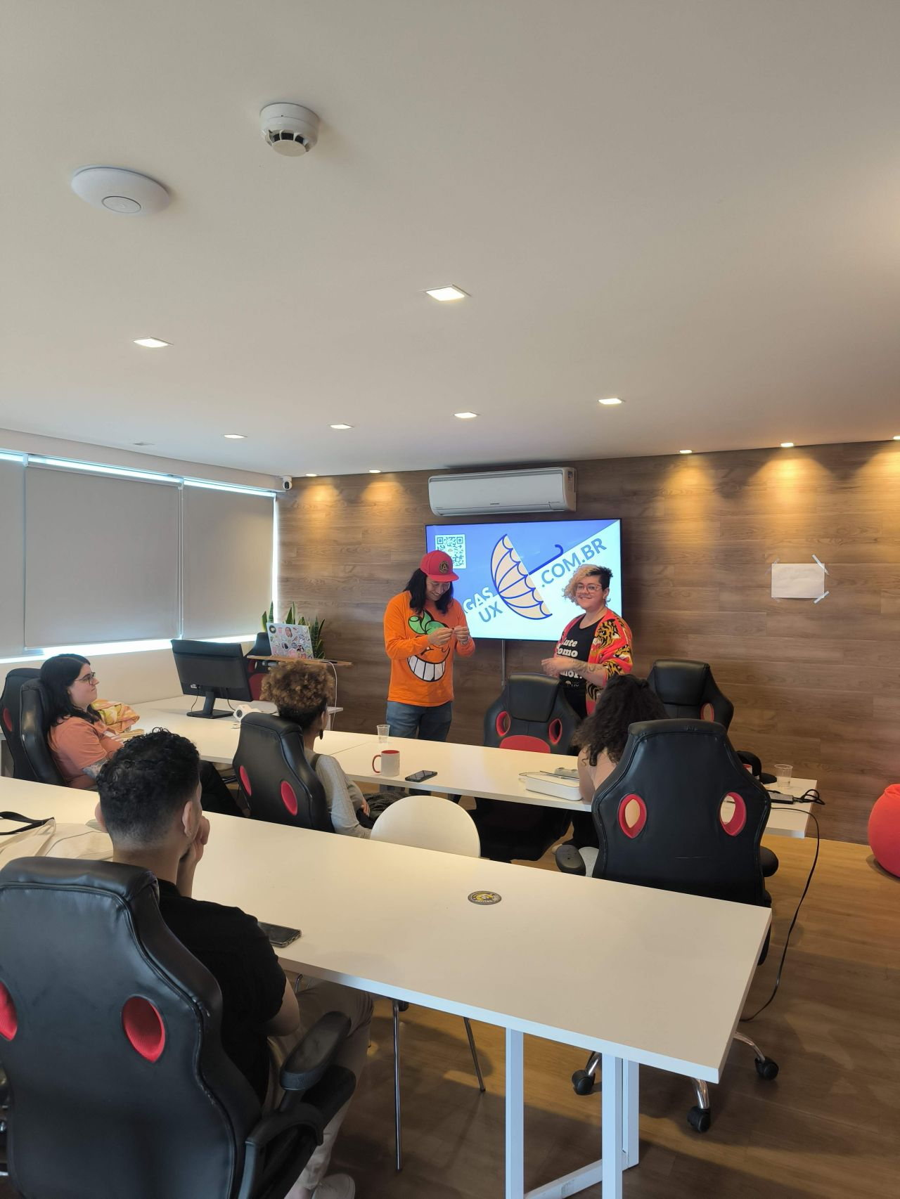 Meetup at São Paulo for VagasUX, sharing tips for junior designers to get into job market.